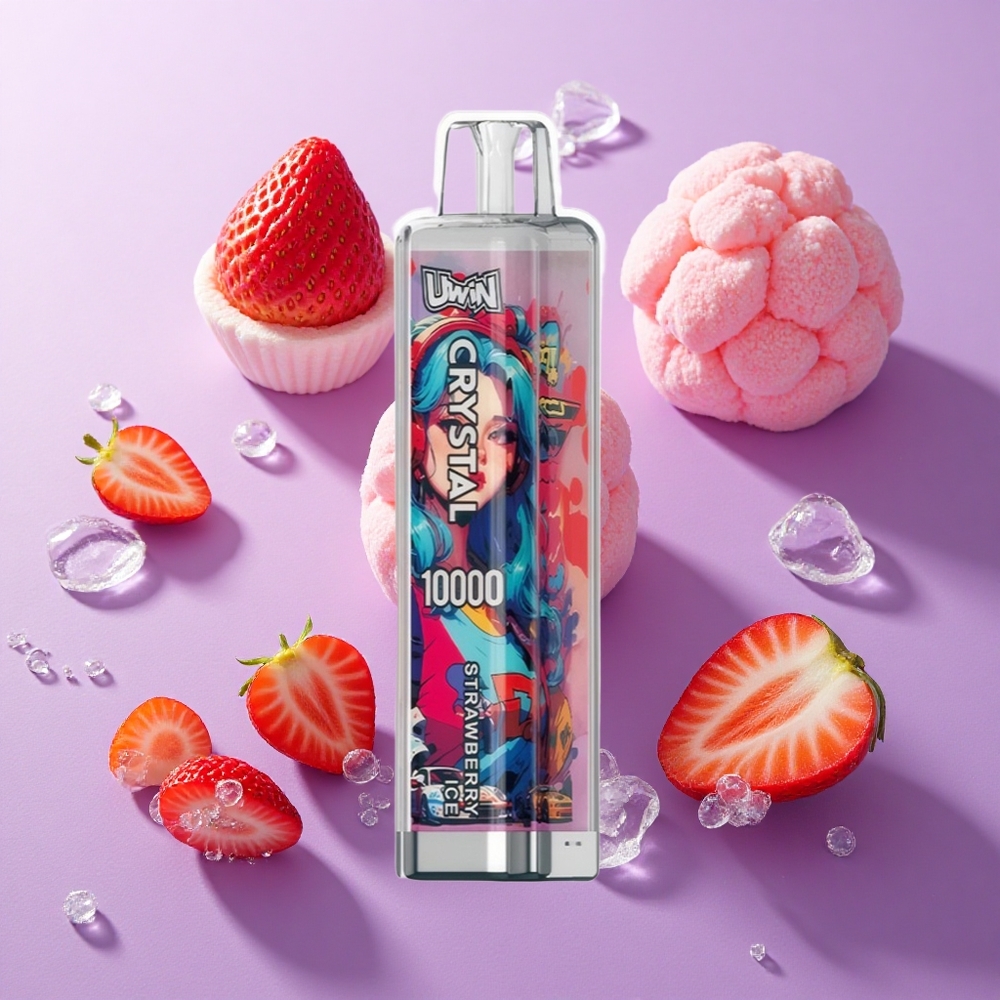 Uwin Crystal 10000 Trekjes Wegwerp Vape Aardbei IJs met RGB-verlichting, 18ml e-vloeistof, 650mAh oplaadbare batterij