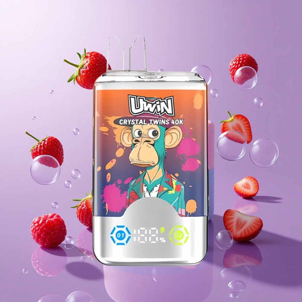 Uwin Crystal Twins 40000 Trekjes Wegwerp Vape Aardbei Framboos Kers Mr Blauw – 2 afzonderlijke smaken in één apparaat