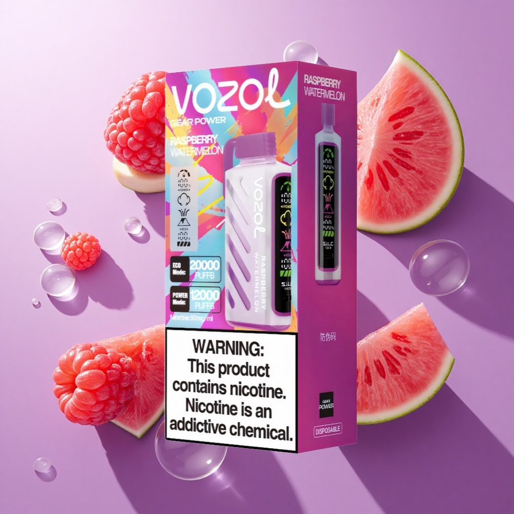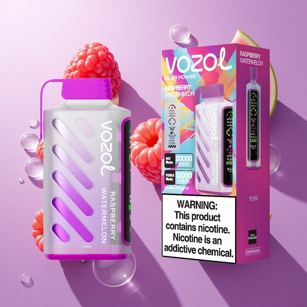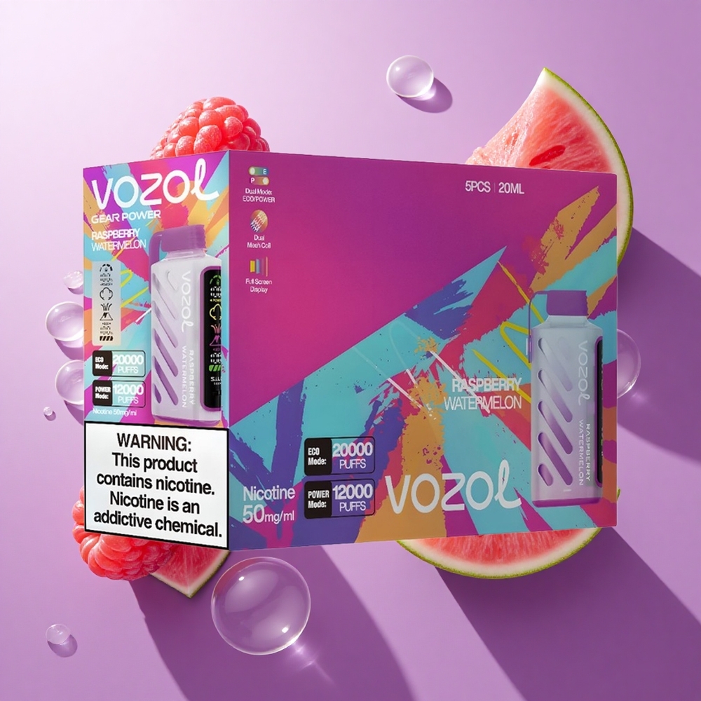 VOZOL Gear Power 20000 Trekjes Wegwerp Vape Framboos Watermeloen met S.i.L.C. Tech, Dual Mesh Coil en 20mL Voorgevulde Vloeistof