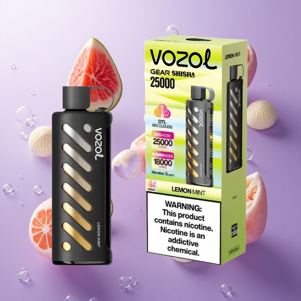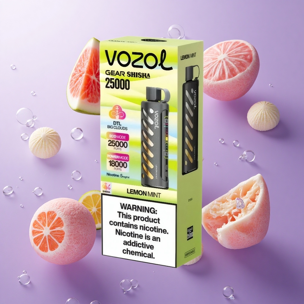 VOZOL Gear Shisha 25000 Trekjes Wegwerp Vape Citroen Munt met 30 Heerlijke Smaken, Dual Mesh Dual Modes en 1000mAh Batterij
